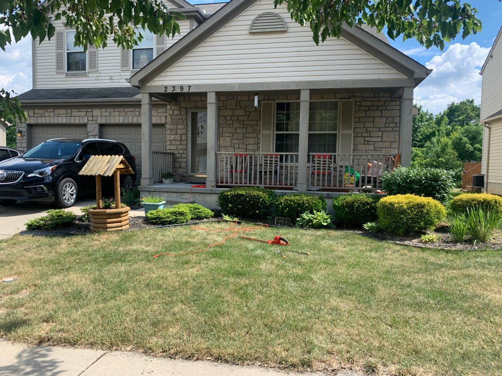Rome was not built in one day, and landscaping it takes time, and attention to detail. Some projects may take 2 to 3 days, and others may take a whole week. As you look at these two pictures the picture on the left is the beginning or before, and the picture on the right is the after picture or the finished product .In this picture I had to pull weeds and dig a trench around the mulch bed, To give it the definition look that you see on the finished product.